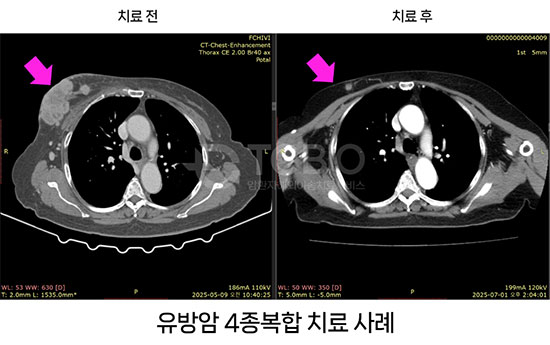 4종 복합치료를 통해 설암 4기 환자와 간암환자, 간문부담관암(Klatskin's tumor), 유방암(삼중음성 유방암 포함)에 대해서 완전 관해 사례가 나왔다고 한다. 이 외에도 위암, 난소암, 대장암, 신장암, 방광암, 전립선암. 등등 우수한 치료결과 사례들이 지속적으로 나오고 있어 더욱 주목을 받고 있다고 한다.